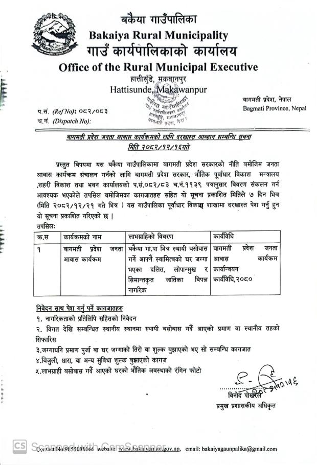 बकैया गाउँपालिकाको पुननिर्माण सम्बन्धी योजना