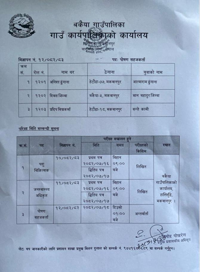 संक्षिप्त सूची तथा परिक्षा मिति सम्बन्धि सूचना !!!