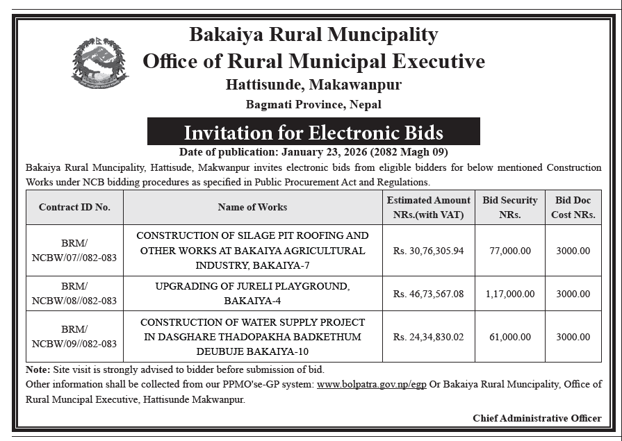 सार्वजनिक खरिद/बोलपत्र सूचना