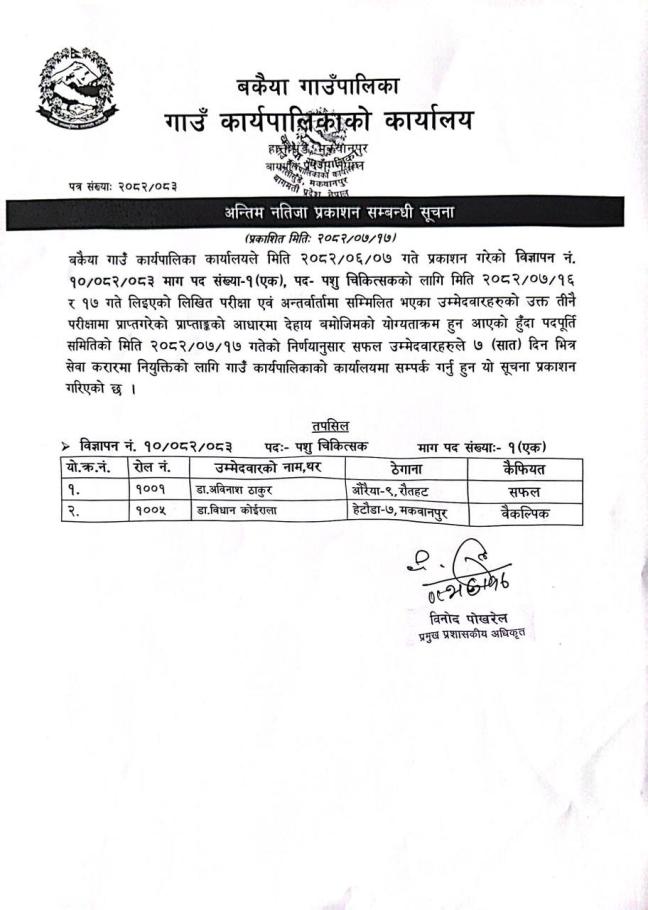 अन्तिम नतिजा प्रकाशन सम्बन्धी सूचना !!!