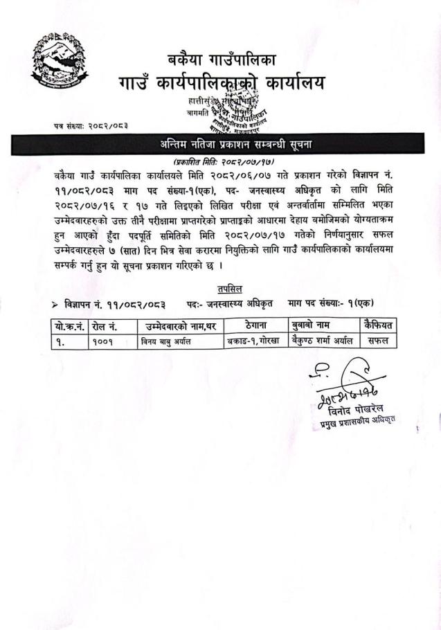 » अन्तिम नतिजा प्रकाशन सम्बन्धी सूचना !!!