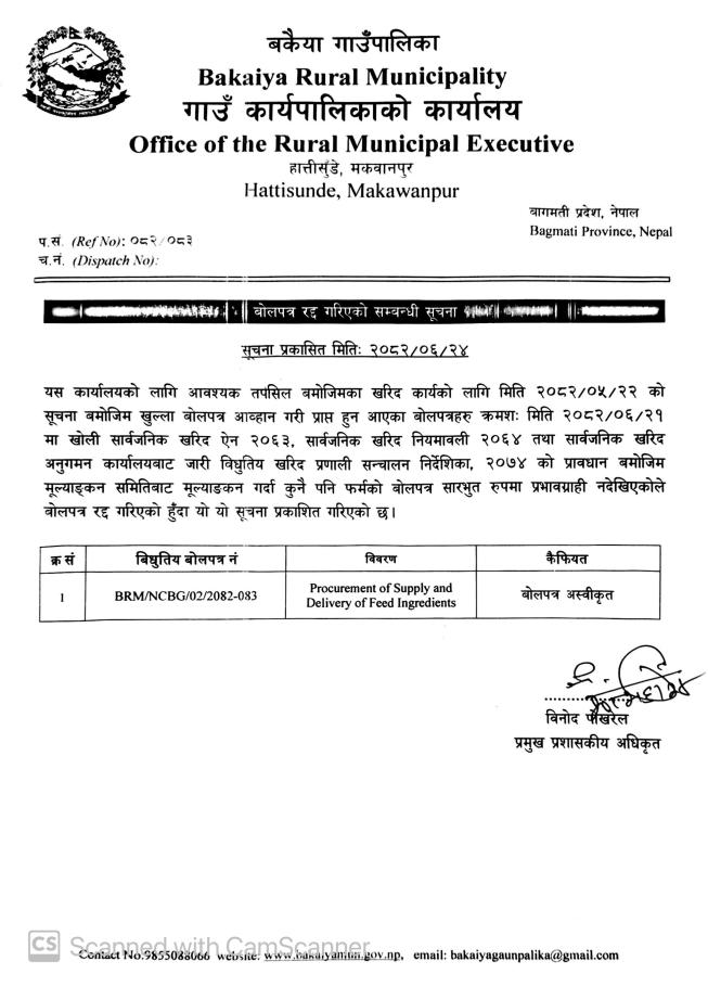 बोलपत्र रद्द सम्बन्धी सूचना ।